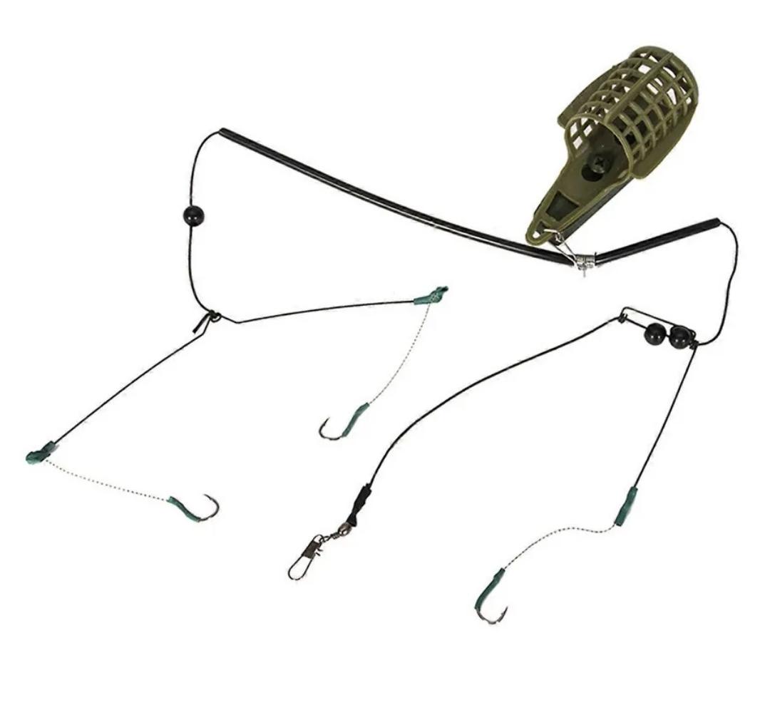 Фидерный монтаж с тремя крючками и кормушкой с грузом.